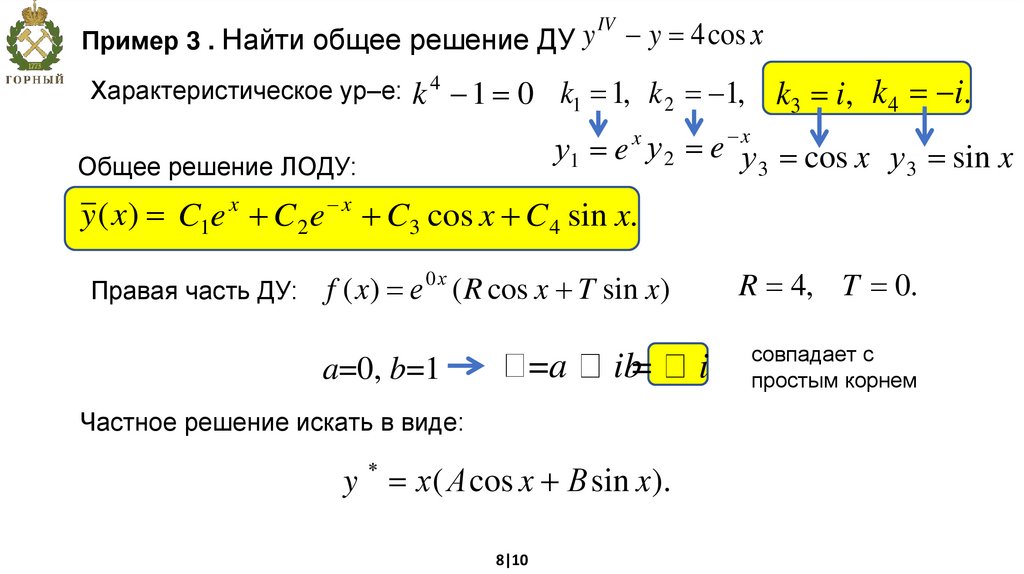 3. Составить характеристическое уравнение и найти корни: k1,2 =