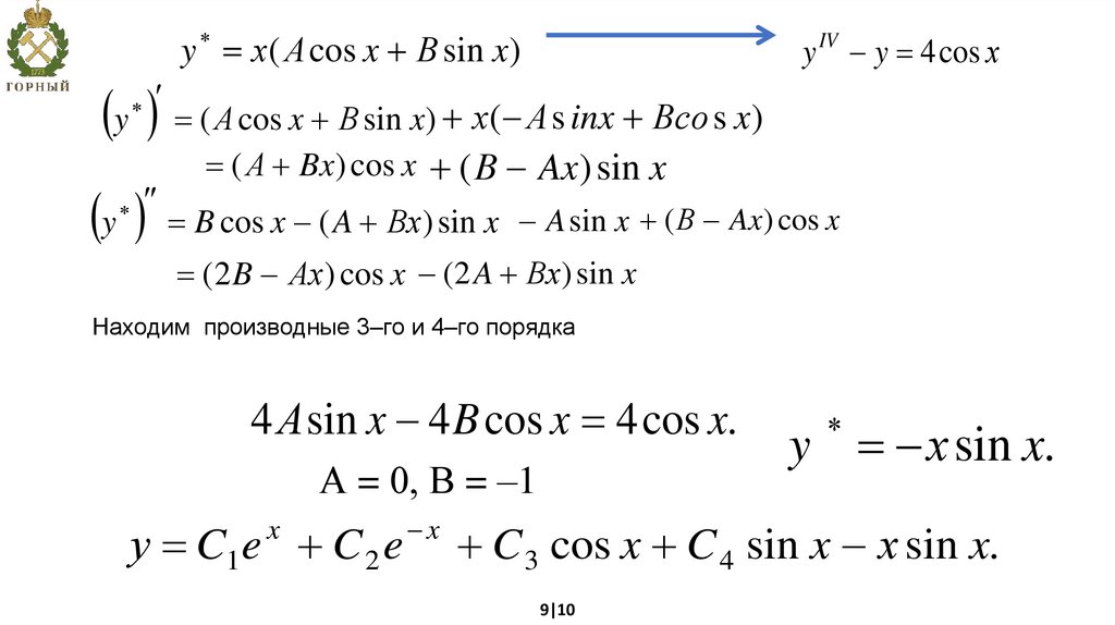 y ( А cos x В sin x) х( А s inx Вco s x)