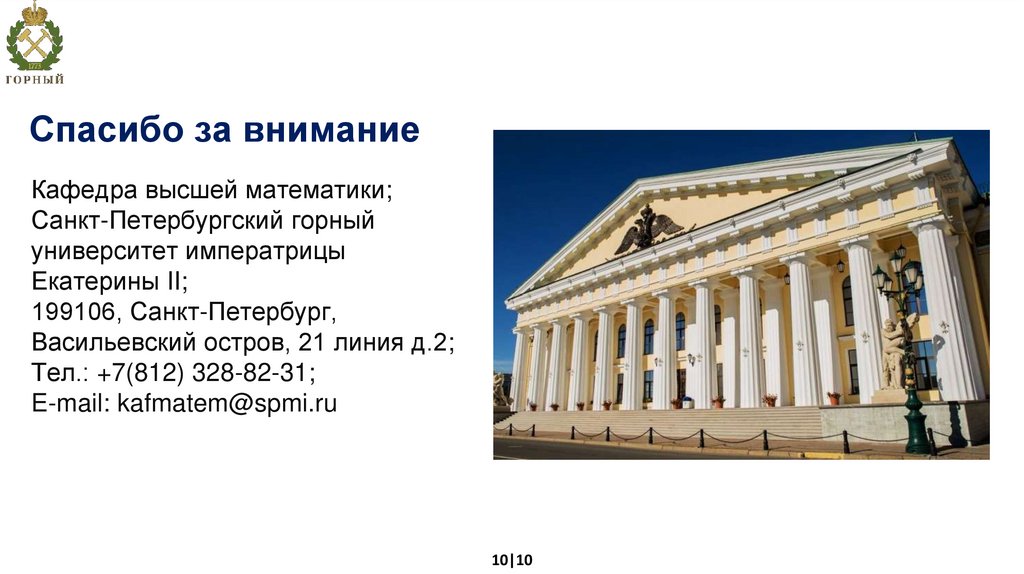 Первое высшее техническое учебное заведение РоссииСанкт-Петербургский горный университет императрицы Екатерины II