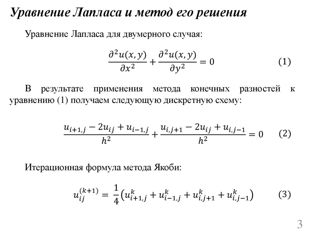 Уравнение Лапласа и метод его решенияУравнение Лапласа для двумерного случая: