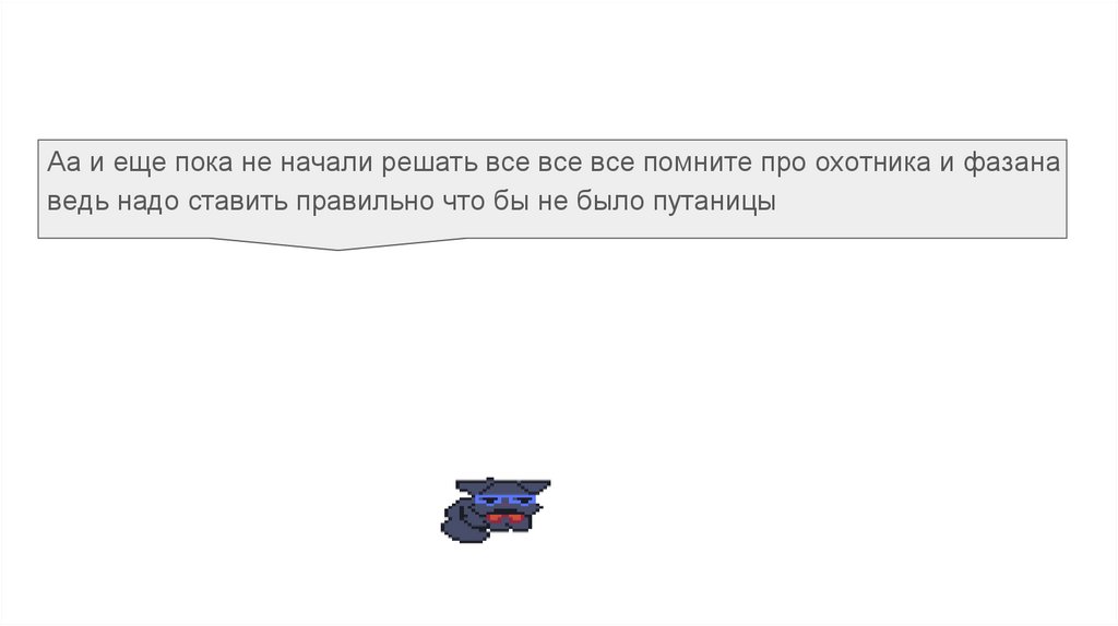 Аа и еще пока не начали решать все все все помните про охотника и фазанаведь надо ставить правильно что бы не было путаницы