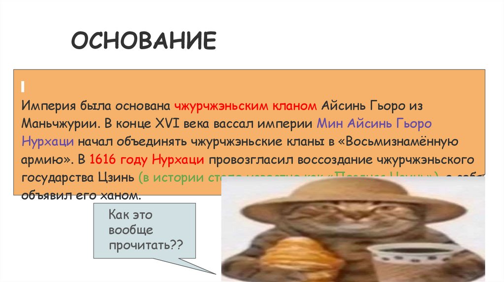 ОСНОВАНИЕИмперия была основана чжурчжэньским кланом Айсинь Гьоро из