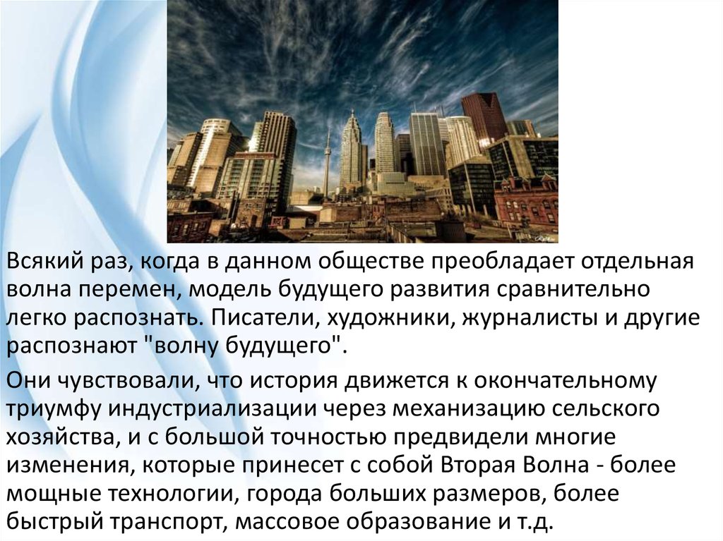 Всякий раз, когда в данном обществе преобладает отдельнаяволна перемен, модель будущего развития сравнительно