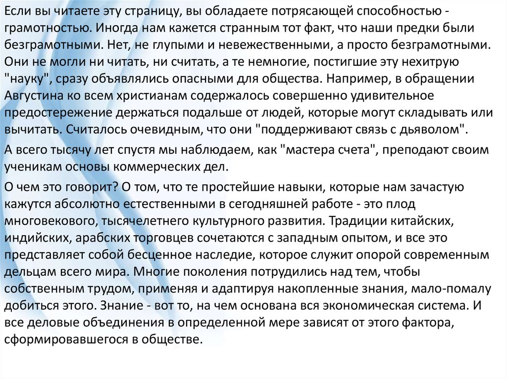 Если вы читаете эту страницу, вы обладаете потрясающей способностью грамотностью. Иногда нам кажется странным тот факт, что наши предки былибезграмотными. Нет, не глупыми и невежественными, а просто безграмотными.