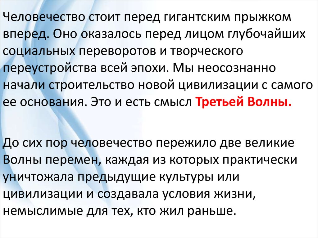 возникающей цивилизацией Третьей Волны, которая уже нагрянула,