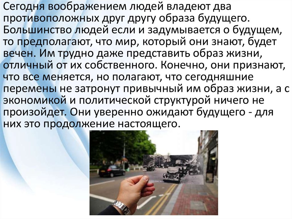 Сегодня воображением людей владеют двапротивоположных друг другу образа будущего.
