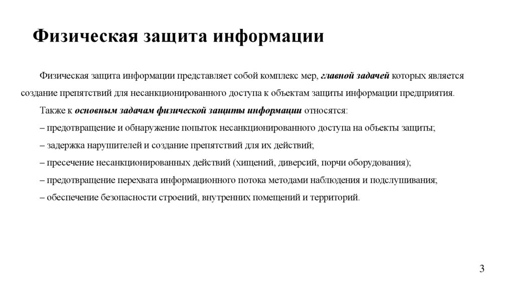 Также к основным задачам физической защиты информации относятся:
