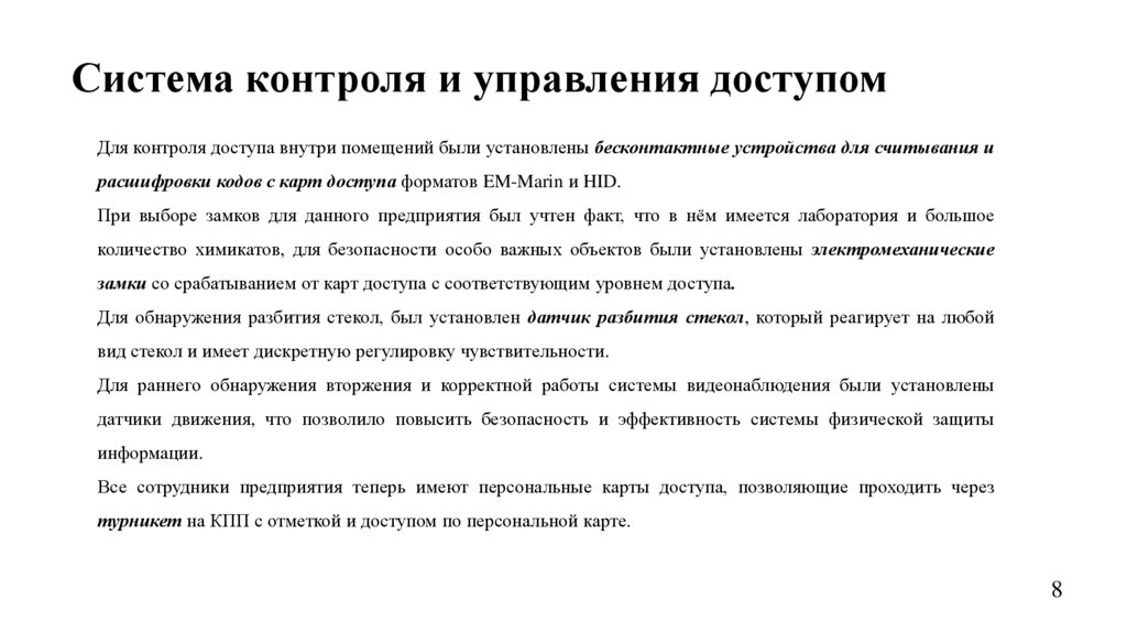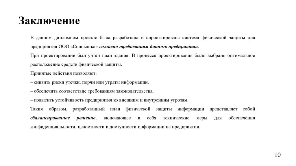 ЗаключениеВ данном дипломном проекте была разработана и спроектирована система физической защиты для