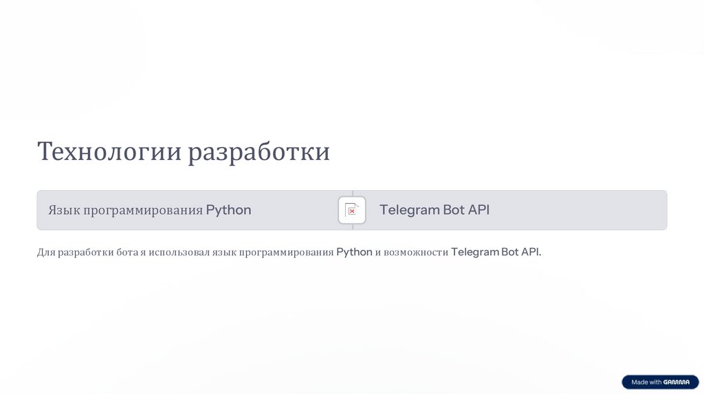 Для разработки бота я использовал язык программирования Python и возможности Telegram Bot API.