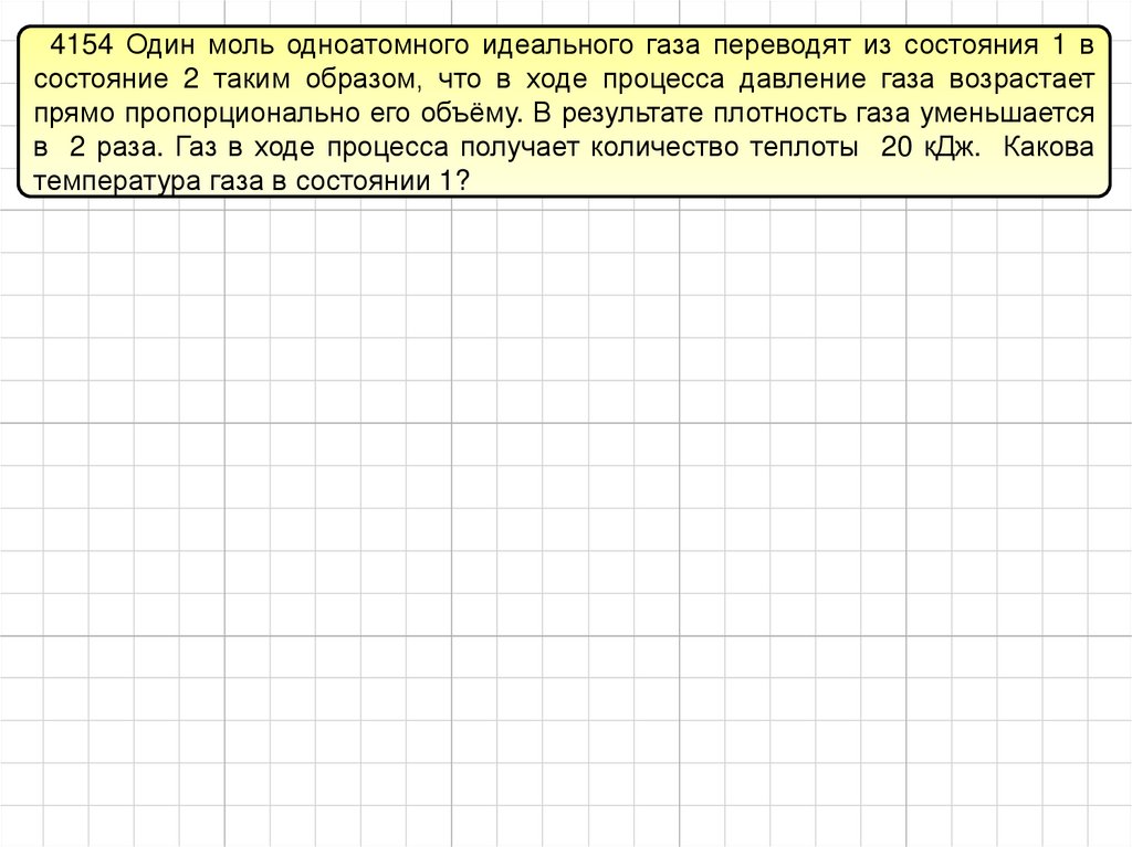 4154 Один моль одноатомного идеального газа переводят из состояния 1 всостояние 2 таким образом, что в ходе процесса давление газа возрастает
