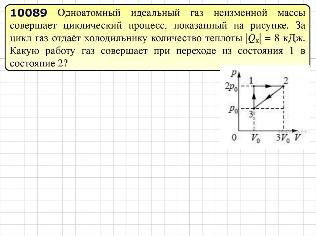 10089 Одноатомный идеальный газ неизменной массысовершает циклический процесс, показанный на рисунке. За