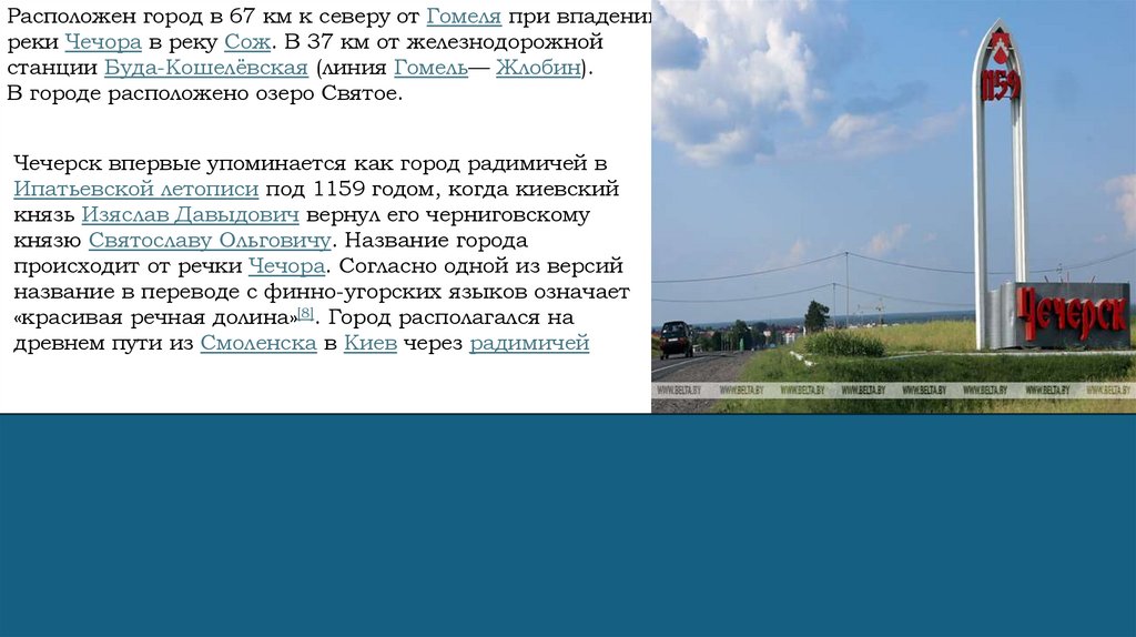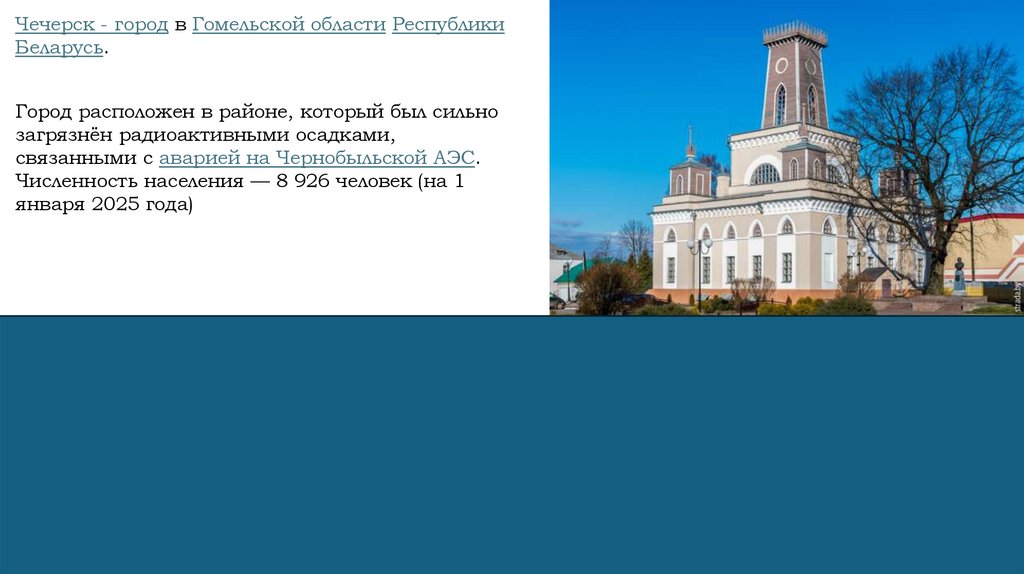 Чечерск - город в Гомельской области РеспубликиБеларусь.