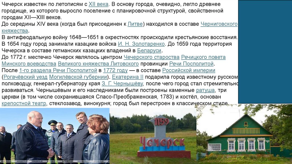До 1772 г. местечко Чечерск являлось центром Чечерского староства Речицкого повета