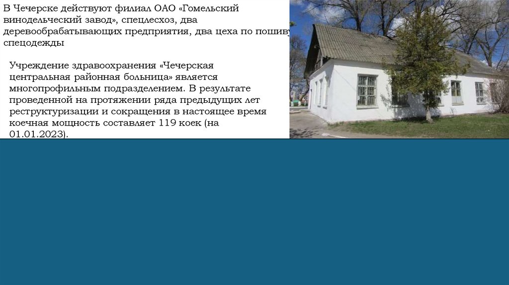 В Чечерске действуют филиал ОАО «Гомельскийвинодельческий завод», спецлесхоз, два