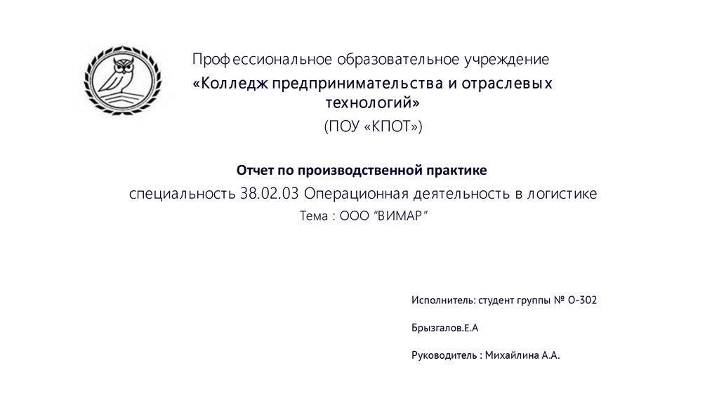 Проф ессиональное образовательное учреждение«Кол ледж предпринимател ь ства и отрасл ев ы х
