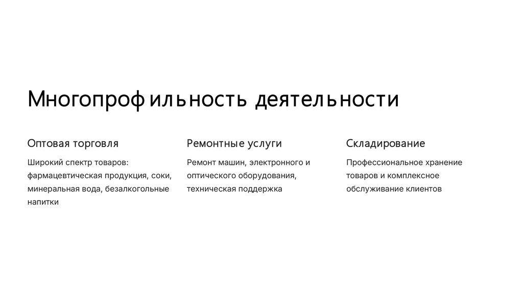 Многопроф ил ь ность деятел ь ностиОптовая торговля