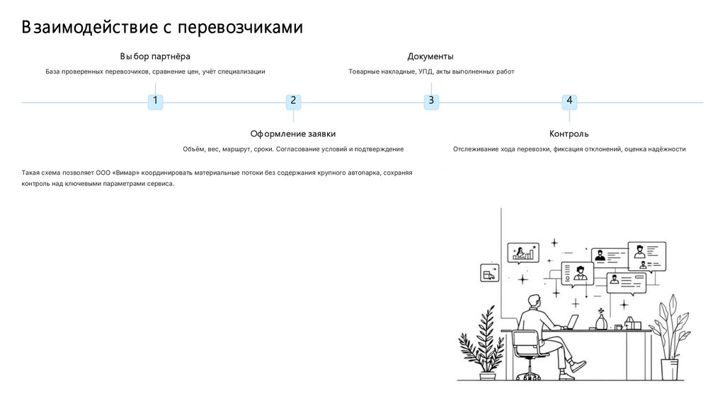 Такая схема позволяет ООО «Вимар» координировать материальные потоки без содержания крупного автопарка, сохраняя