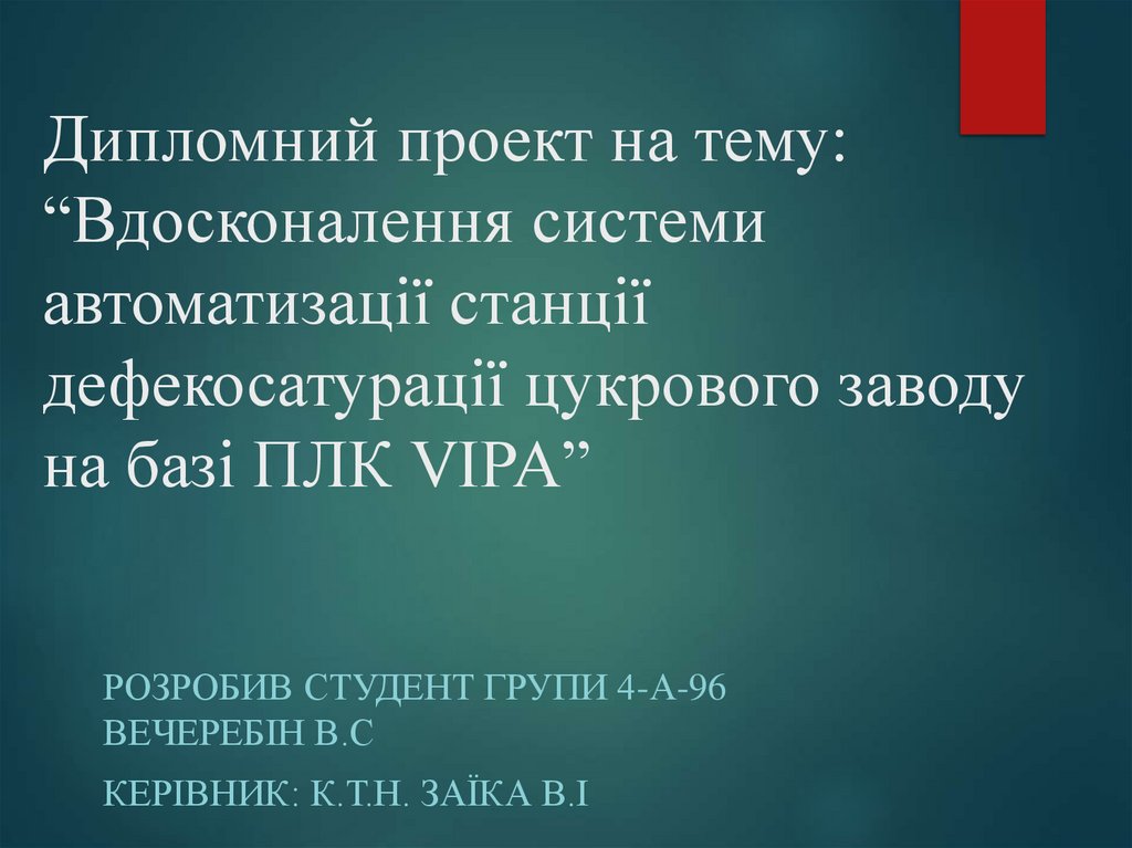 1. Дипломний проект на тему: “Вдосконалення системи автоматизації станції дефекосатурації цукрового заводу на базі ПЛК VIPA”