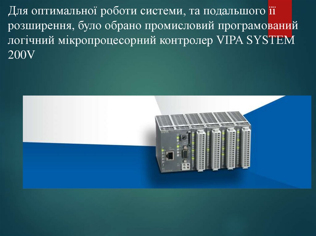Для оптимальної роботи системи, та подальшого їїрозширення, було обрано промисловий програмований