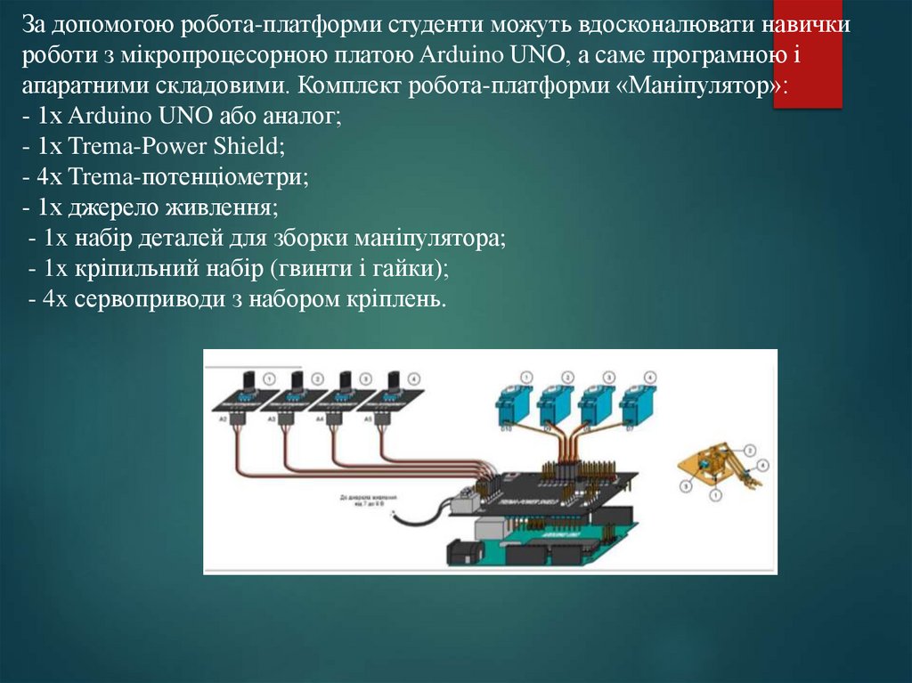 апаратними складовими. Комплект робота-платформи «Маніпулятор»: