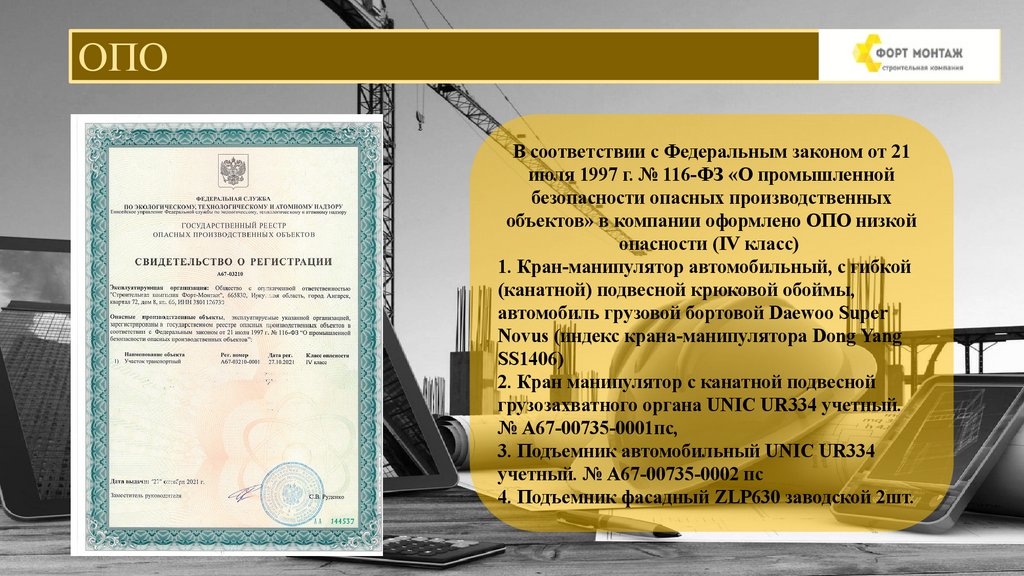 - Предоставление услуг по монтажу, ремонту, изготовлению и техническому