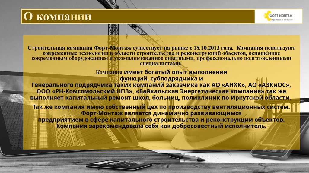 О компанииСтроительная компания Форт-Монтаж существует на рынке с 18.10.2013 года. Компания используют