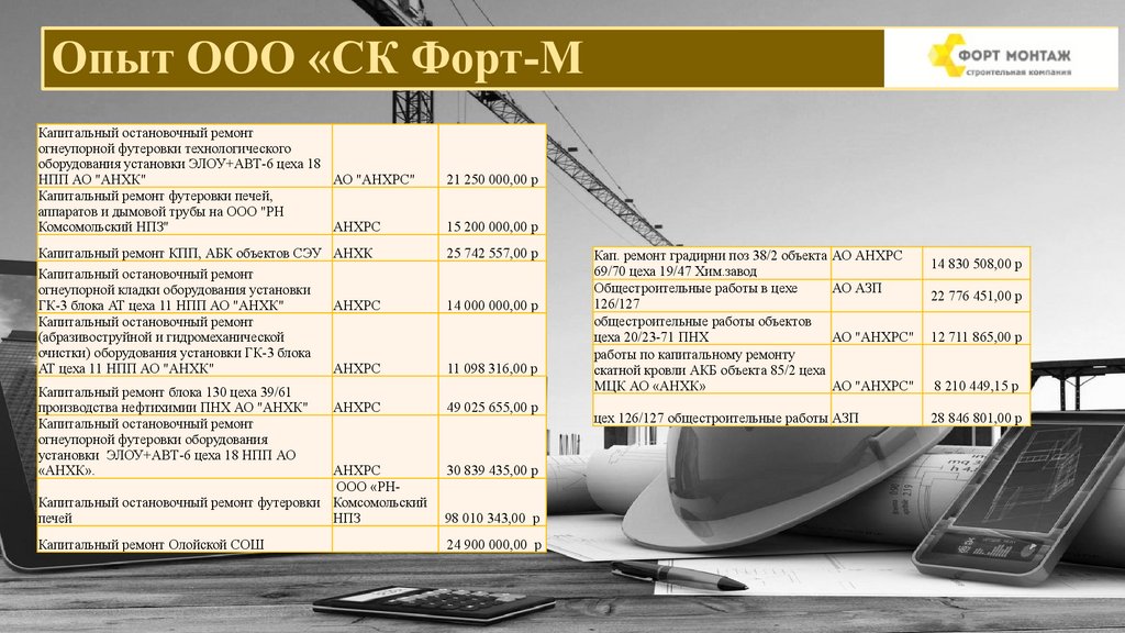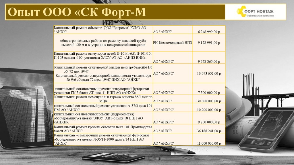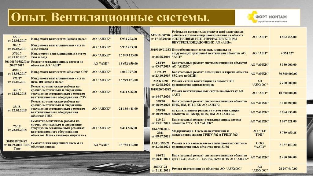 Генерального подрядчика таких компаний заказчика как АО «АНХК», АО «АЗКиОС»,