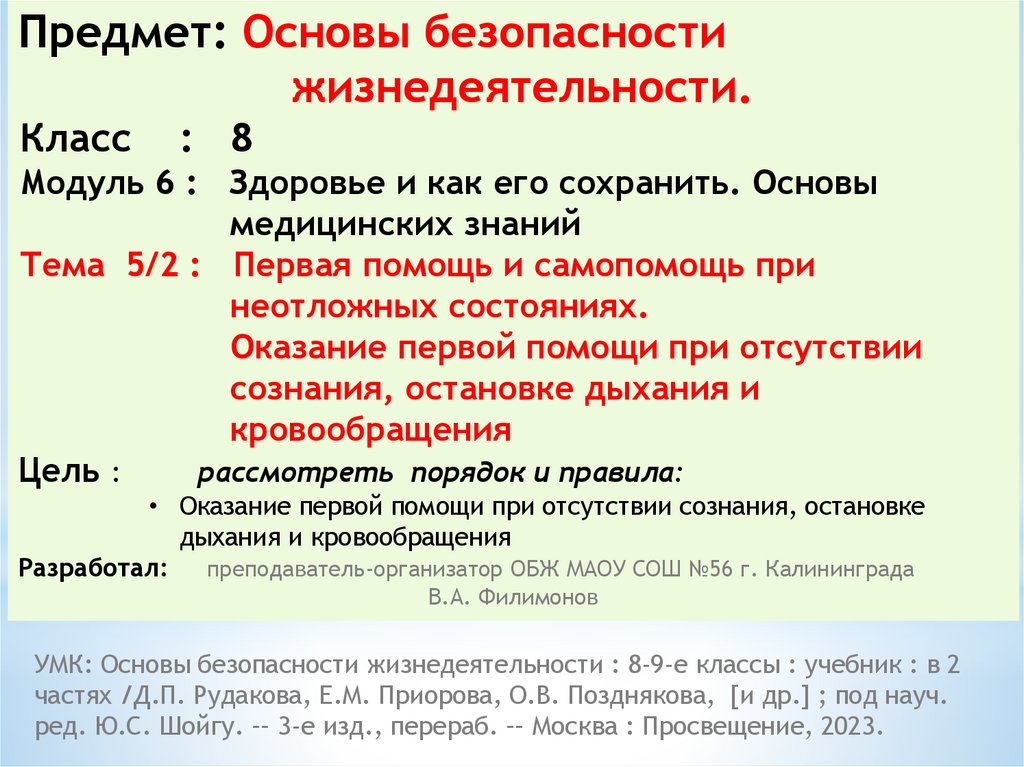 Урок 14.2_9кл2024_М8т5((учМ6_Т5_2_Оказание первой помощи при отсутствии сознания, ост