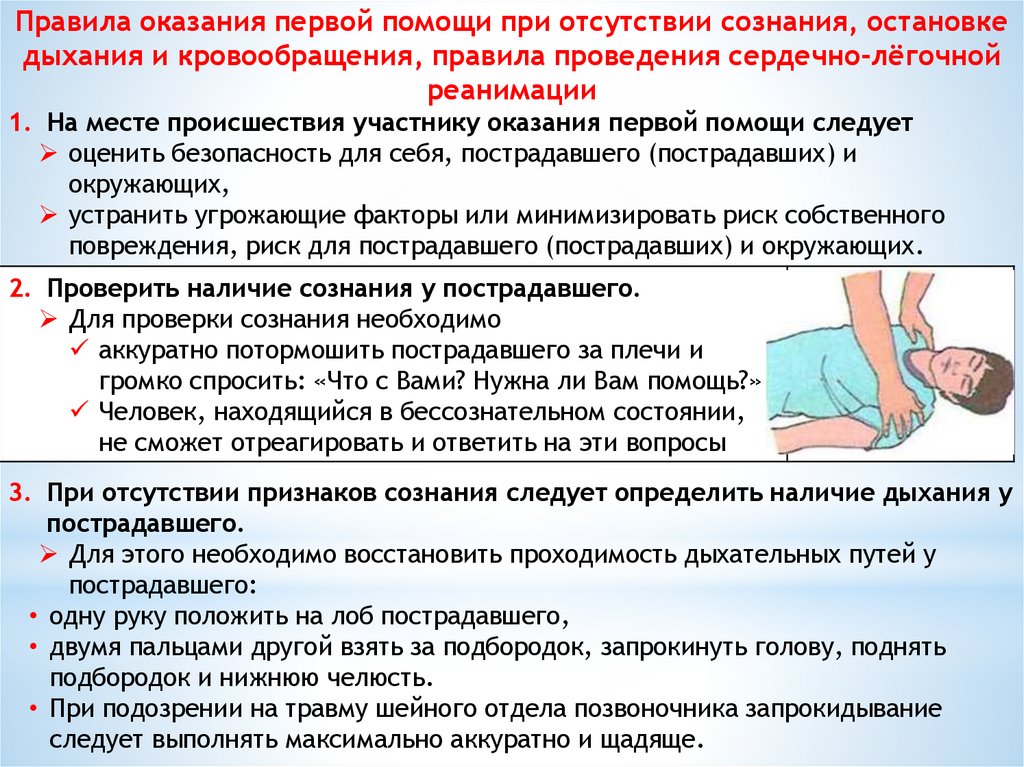 Правила оказания первой помощи при отсутствии сознания, остановкедыхания и кровообращения, правила проведения сердечно-лёгочной