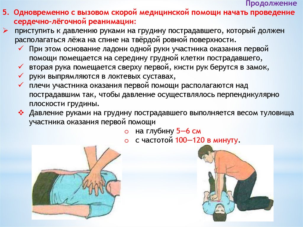 Продолжение5. Одновременно с вызовом скорой медицинской помощи начать проведение