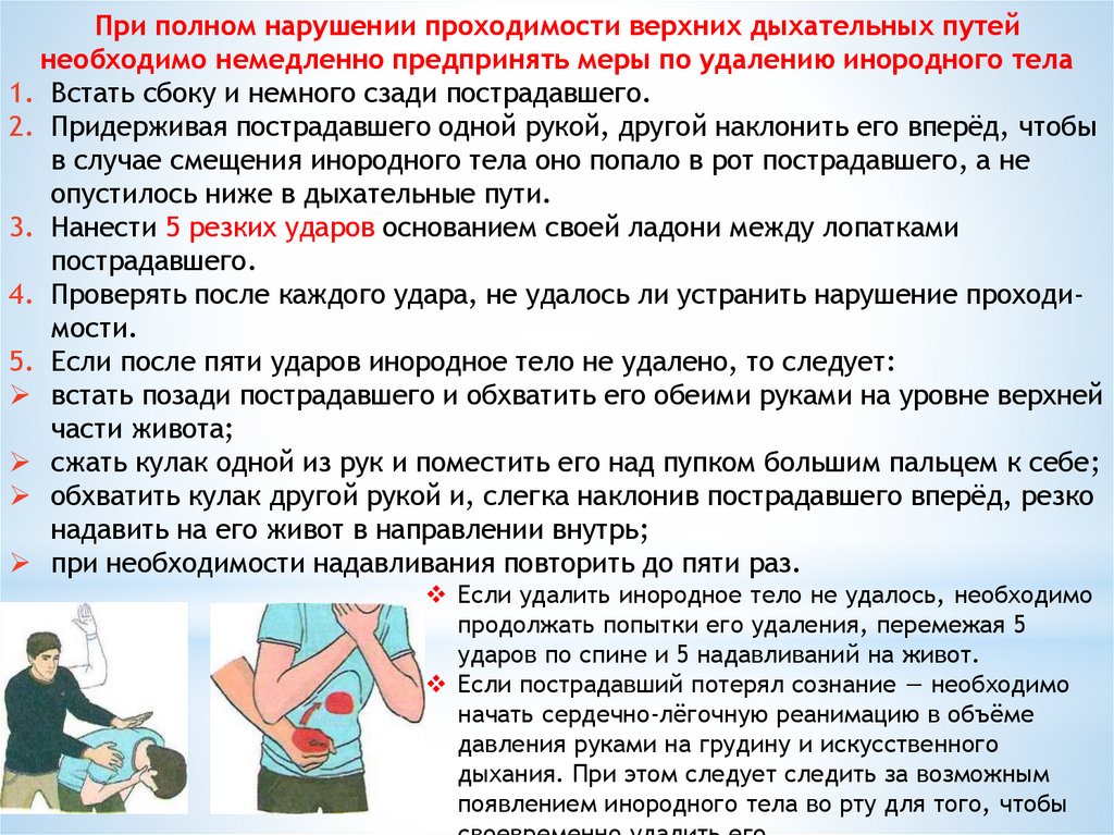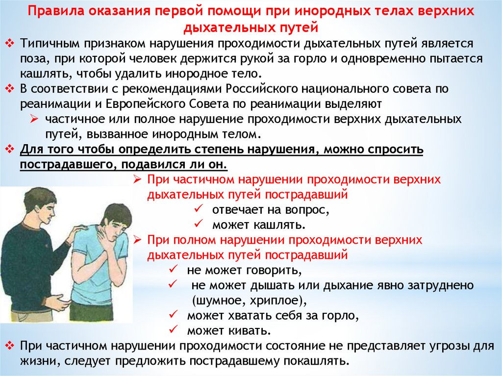 Правила оказания первой помощи при инородных телах верхнихдыхательных путей