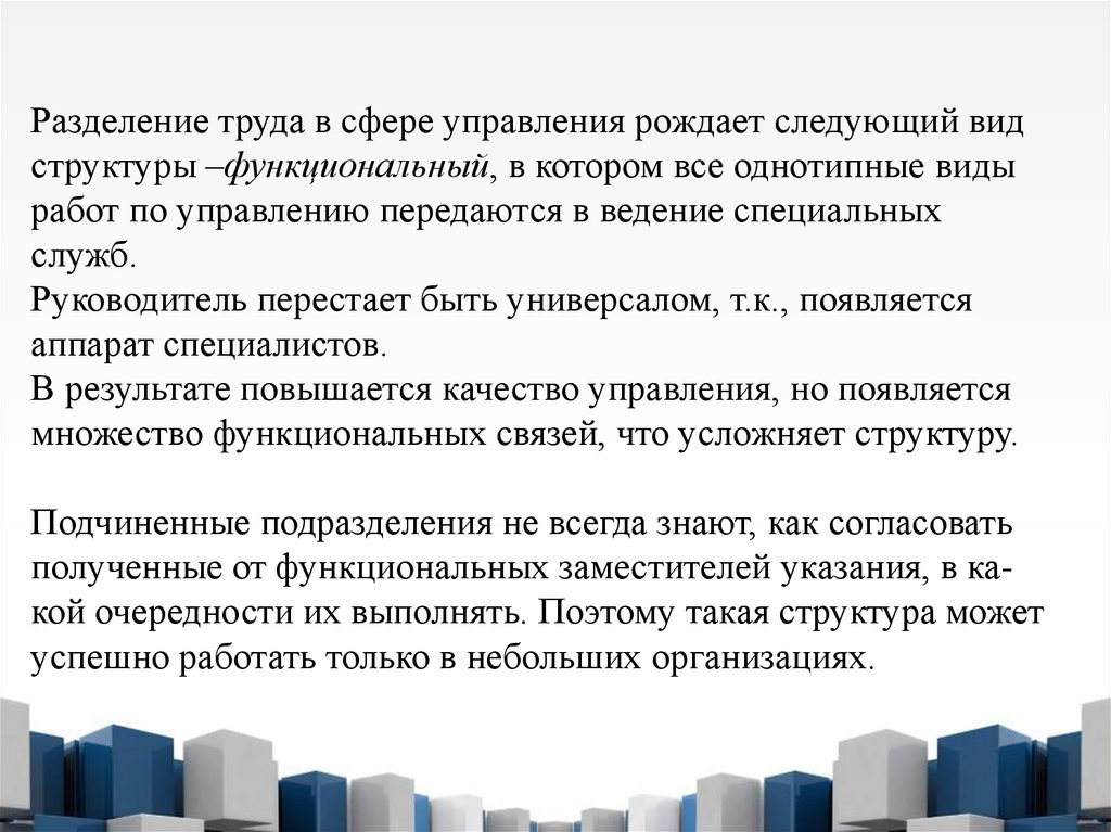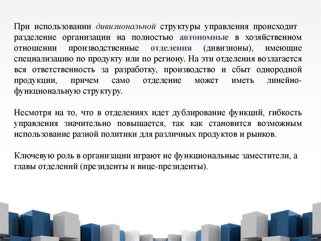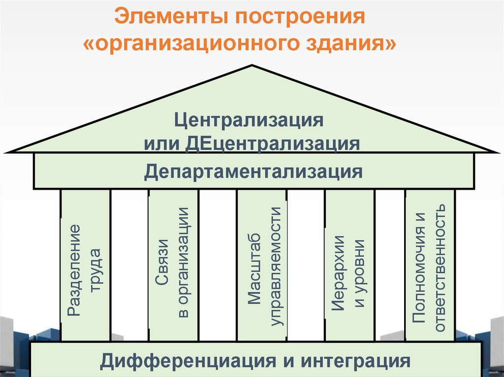 факторов происходит выделение подразделений, определяются задачи, функции и