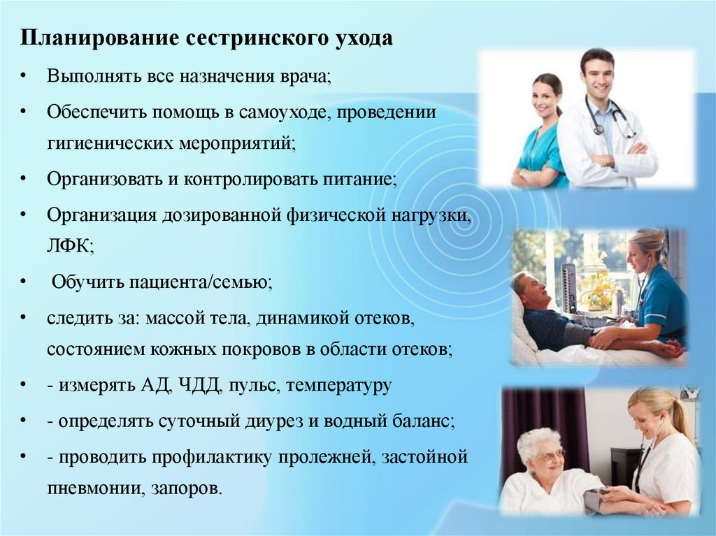 Планирование сестринского ухода• Выполнять все назначения врача;