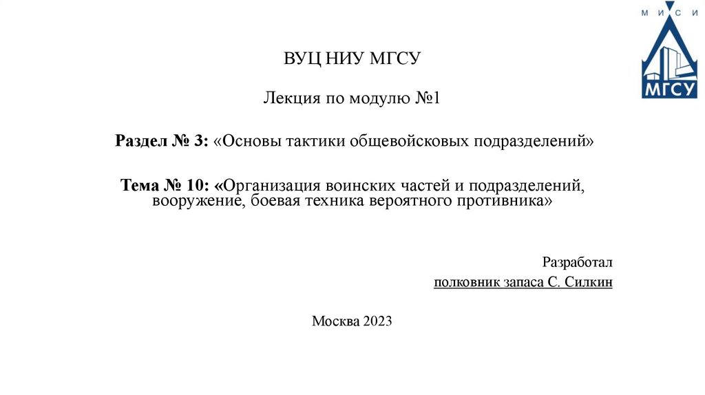 Лекция_Модуль_№1_Раздел_№3_Тема_№10_Организация_воинских_частей
