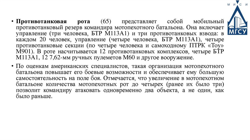 • По оценкам американских специалистов, такая организация мотопехотного