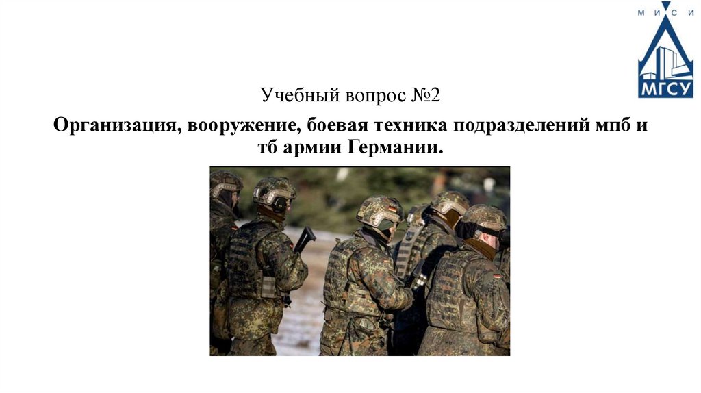 Учебный вопрос №2Организация, вооружение, боевая техника подразделений мпб и