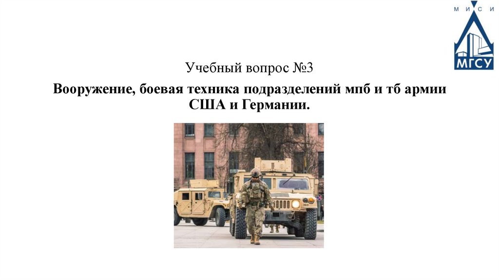 Учебный вопрос №3Вооружение, боевая техника подразделений мпб и тб армии