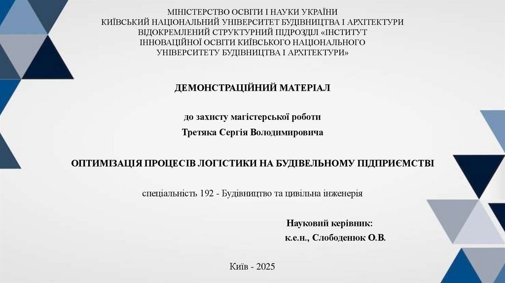Актуальність теми зумовлена тим, що логістичні операції формують значнучастину витрат у будівельному виробництві, а їх неефективна організація