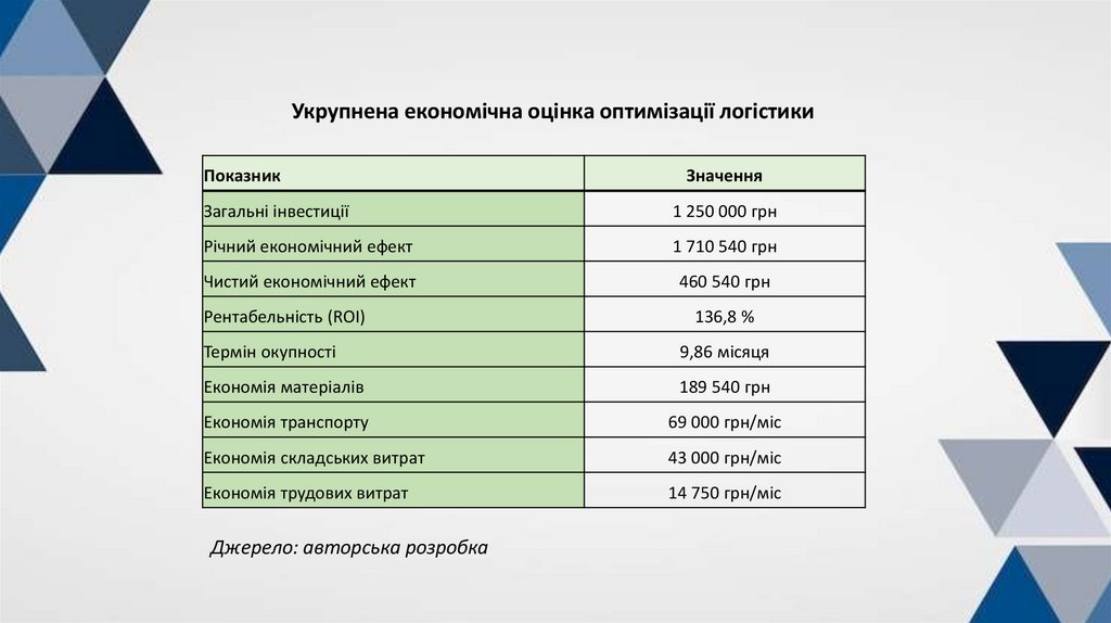 • оцінити економічний ефект пропонованих логістичних рішень та їх вплив на діяльність