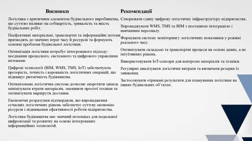 оптимізованої логістичної системи на будівельних підприємствах, що