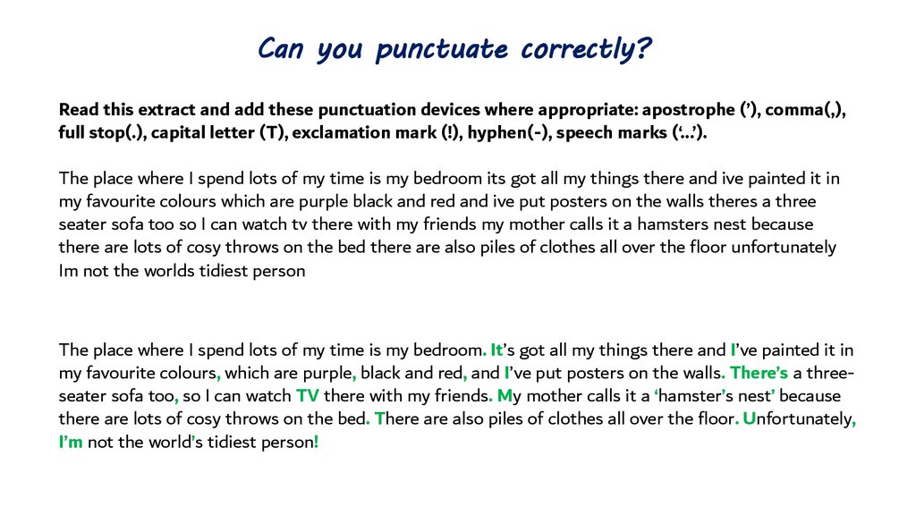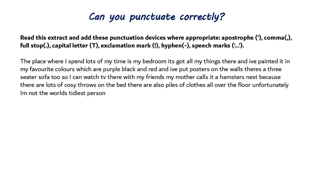 Can you punctuate correctly?Read this extract and add these punctuation devices where appropriate: apostrophe (’), comma(,),