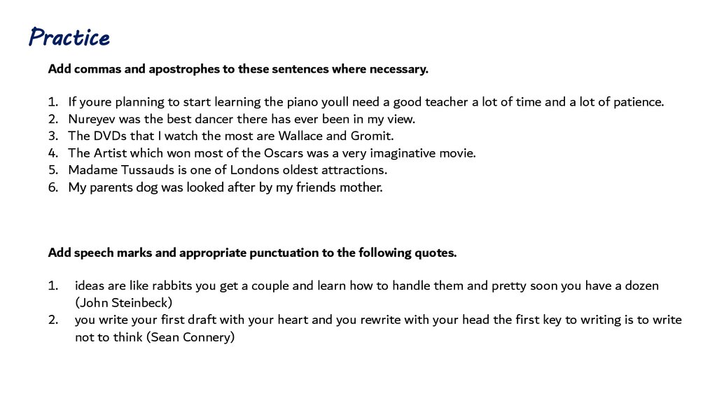 PracticeAdd commas and apostrophes to these sentences where necessary.