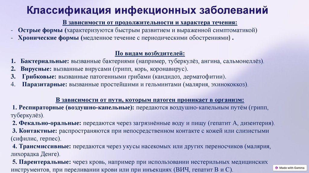 Классификация инфекционных заболеванийВ зависимости от продолжительности и характера течения: