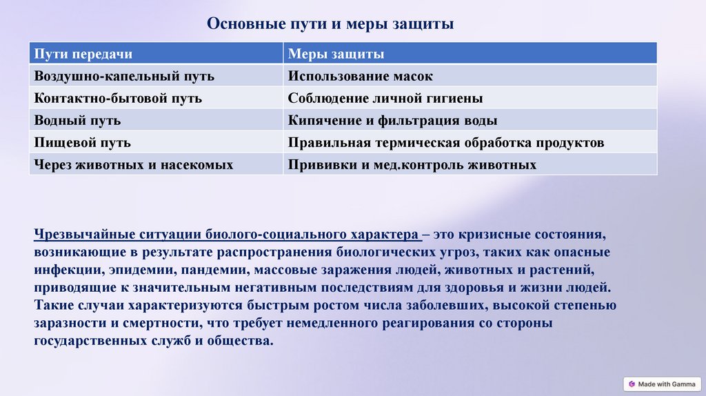 Основные пути и меры защитыПути передачи