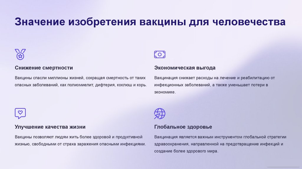 Значение изобретения вакцины для человечестваСнижение смертности