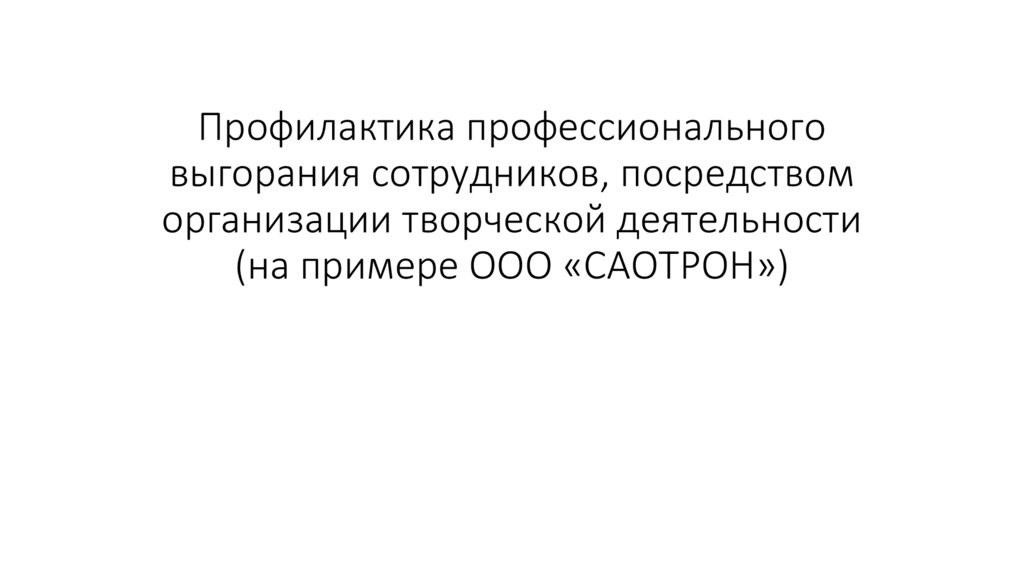 1. Профилактика профессионального выгорания сотрудников, посредством организации творческой деятельности (на примере ООО