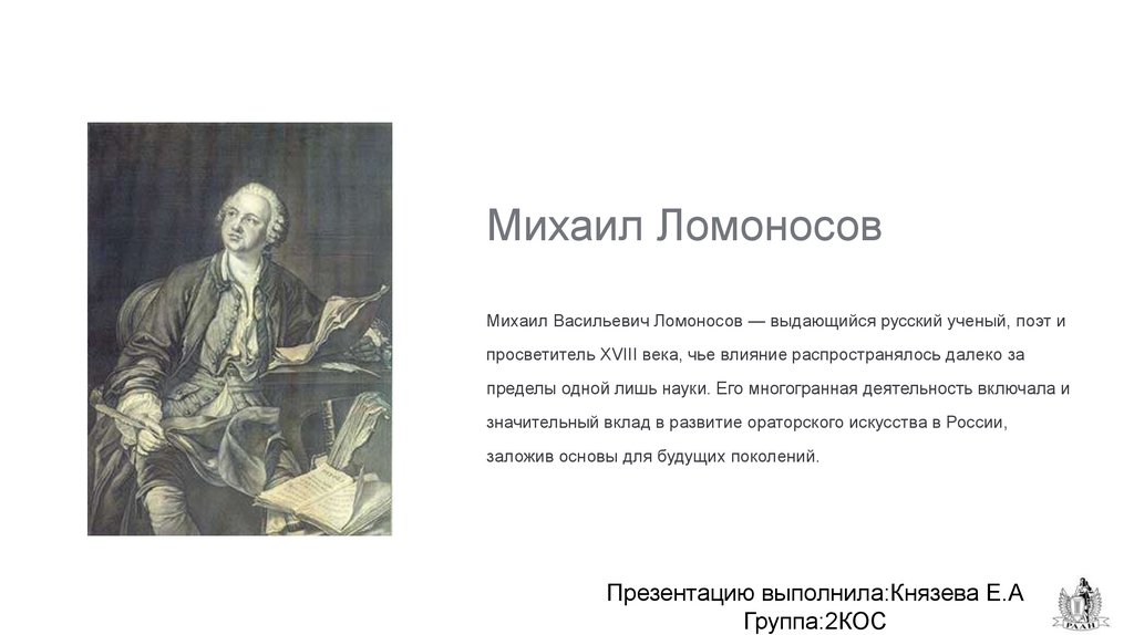 Михаил ЛомоносовМихаил Васильевич Ломоносов — выдающийся русский ученый, поэт и