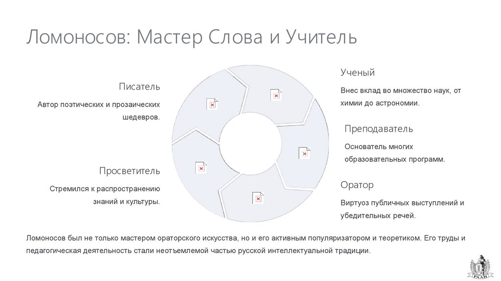 Ломоносов был не только мастером ораторского искусства, но и его активным популяризатором и теоретиком. Его труды и