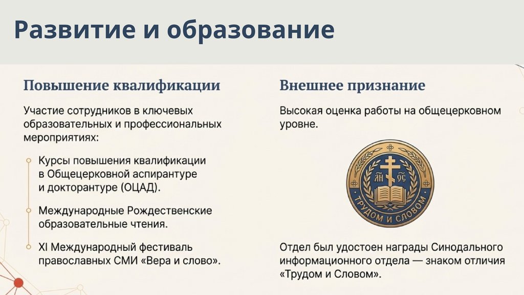 Развитие и образование• Курсы повышения квалификации в Общецерковной аспирантуре