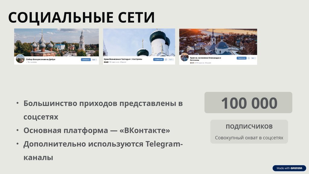 СОЦИАЛЬНЫЕ СЕТИ• Большинство приходов представлены в